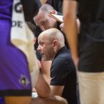 - Head Coach Brette Tanner guides the Wildcats through the next few minutes of play during a media timeout. (Photo by Riley Fisher)