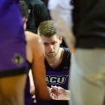 - Redshirt senior guard Tobias Cameron listens intently to the Wildcats’ assistant coaches during the last media timeout of the game. (Photo by Riley Fisher)