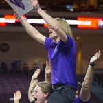 - Joe Golding, former Wildcat men’s basketball head coach, makes a surprise appearance at the start of the game to cheer on his friends. (Photo by Riley Fisher)