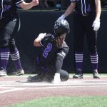 - Freshman catcher and utility Miranda Lista slides into home plate to score a run. (Photo by Taelyn Williams)
