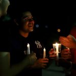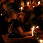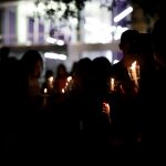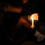- David Caire lights a friends candle. (Photo by Meghan Long)