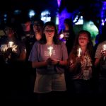 - A new Wildcat holds her candle while she prays. (Photo by Meghan Long)