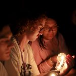 - A new student blocks his candle from the wind. (Photo by Meghan Long)