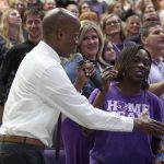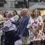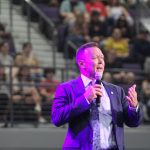 - Dr. Phil Schubert, president of the university, introduces the major donors to Moody Coliseum. (Photo by Sydney Varner)