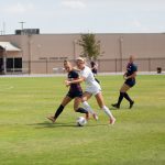 - Jazilyn Torres, junior midfielder from Abilene, sets up a shot for her teammate. (Photo by Daniel Curd)