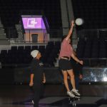 - A team member tries to spike the ball. (Photo by Daniel Curd)