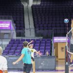 - A player sets the ball over the net. (Photo by Daniel Curd)