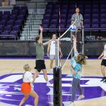 - A player sets up a block. (Photo by Daniel Curd)