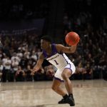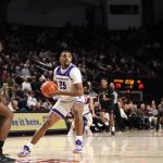 - Red-shirt senior guard Immanuel Allen heads down court into Wildcat territory. (Photo by Kaylee Kahn)