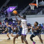 - Ja’Sean Jackson, sophomore guard from San Antonio, looks to advance the ball. (Photo by Daniel Curd)