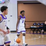 - Airion Simmons, senior forward from Little Rock, Arkansaw, brings the ball down court. (Photo by Daniel Curd)