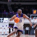 - Airion Simmons, senior forward from Little Rock, Arkansas, looks for an opening. (Photo by Daniel Curd)