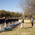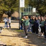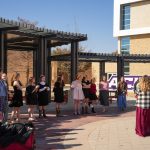 - New members of Sigma Theta Chi gather around at the Teague Blvd circle. (Photo by Daniel Curd)