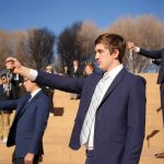 - New members of GATA gather in a circle around the newly constructed GATA Fountain. (Photo by Daniel Curd)