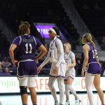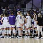 - Maleeah Langstaff, graduate forward from Asheville, North Carolina, walks up to her teammate to high-five. (Photo by Hannah Park)