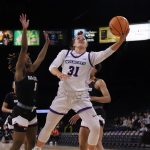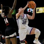 - Addison Martin, redshirt freshman forward from Shreveport, Louisiana, makes a layup. (Photo by Daniel Curd)