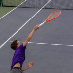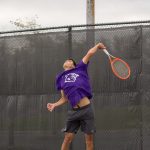 - Sophomore Cesar Barranquero returns a serve. (Photo by Londyn Gray)