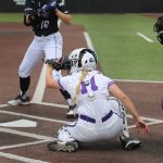 - Sydney Kaiser, junior catcher from Pflugerville, snags the ball after a pitch. (Photo by Hannah Park)