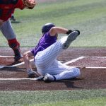 - Grayson Tatrow, senior outfielder from Mansfield, runs to home base. (Photo by Sarah Eunyoung Thompson)