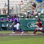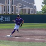 - Grayson Tatrow, senior outfielder from Mansfield, runs to third base. (Photo by Sarah Eunyoung Thompson)