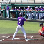 - Logan Britt, junior outfielder from Fort Worth, steps up to bat. (Photo by Sarah Eunyoung Thompson)