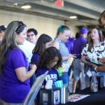 - Family members gather around the Whataburger booth. (Photo by Hannah Park)