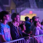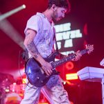 - Jordan Feliz and electric guitar player, Garrett Moshier, encourage the crowd to sing along. (Photo by Daniel Curd)
