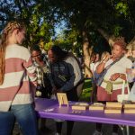 Students shop at the Purple Outfitters table. (Photo by Daniel Curd)