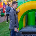 Jackson Callaway, junior biology major from Mckinney, manages tickets for an inflatable maze. (Photo by Daniel Curd)