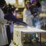 Chemistry students demonstrate different colors of fire in the Science Carnival. (Photo by Daniel Curd)