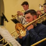 Steven Meyer, sophomore music teaching major from Alvarado, plays the trombone in the jazz band. (Photo by Daniel Curd)