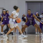 - Nasir DeGruy, sophomore guard from New Orleans, Louisiana, looks to pass the ball. (Photo by Daniel Curd)