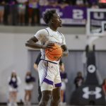 - Kavion McClain, junior guard from Memphis, Tennessee, looks for an opening. (Photo by Daniel Curd)
