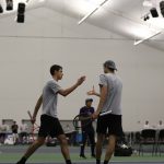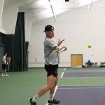 - Daniel Morozov, junior from Joliet, Illinois, returns the ball. (Photo by Hannah Park)