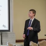 - Samuel Ash, junior engineering major from Stephens, Georgia, gives a presentation over his research. (Photo by Steven Infante)