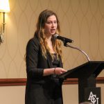 - Lily Yaro, junior digital entertainment technology major from Highland Village, gives a speech over her research. (Photo by Steven Infante)