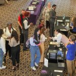 - Students check-in to view their peer’s presentations at the URCI festival. (Photo by Steven Infante)