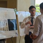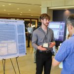 - Thomas Lyons, sophomore engineering major from Hendersonville, Tennessee, gives a presentation to an attendee over his research. (Photo by Steven Infante)