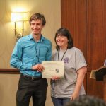 - Jayden Smith, sophomore engineering major from Weatherford, poses for a photo after receiving an award. (Photo by Steven Infante)
