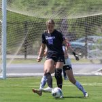 - Peyton Hill, sophomore forward from Laguna Niguel, California, lines up her kick. (Photo by Steven Infante)