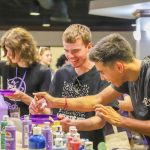 - Students enjoy their free time at the Paint & Brew event during Friday’s free time. (Photo by Merrick Peeples)