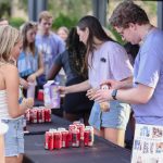 - Gabe DeVries, sophomore chemistry major from Anchorage, Alaska, pours a can of Coke for a student during SGA’s AMP U event. (Photo by Daniel Curd)