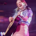 - Graci Phillips, guitarist and vocalist for The 502s, strums a chord on her guitar. (Photo by Daniel Curd)
