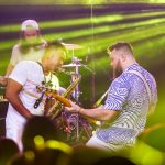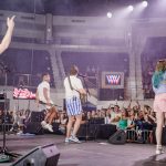 - Band members jump up and down on the stage during the concert. (Photo by Daniel Curd)
