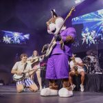 - Willie the Wildcat plays the bass guitar during The 502s concert. (Photo by Daniel Curd)