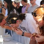 Ivy Gerhard, sophomore management major from Mckinney, participates in the annual hot wing challenge hosted by the men of Sub-T. (Photo by Hannah Park)