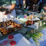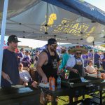 Students gather for drinks and snacks at Delta Theta tailgate tent. (Photo by Hannah Park)