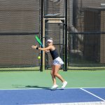 - Hebe Toyos, senior from Mutxamel, Spain, returns the ball to the opponent. (Photo by Steven Infante)