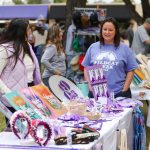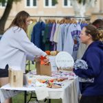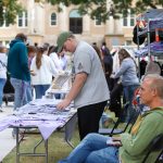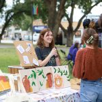 - From the Griggs Center Founder’s Club, Elegant Thread owner, talks with visitors at the Homecoming Carnvial. (Photo by Sarah Eunyoung Thompson)