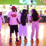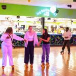 - Three students hold hands as they skate together at BSU’s Skate Night. (Photo by Sarah Eunyoung Thompson)